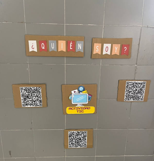 Los niños han hecho un dibujo de sí mismo y han grabado una adivinanza con su nombre. Ese dibujo se ha animado con la aplicación add animation. Posteriormente, hemos hecho unos códigos qr vinculados a cada vídeo.