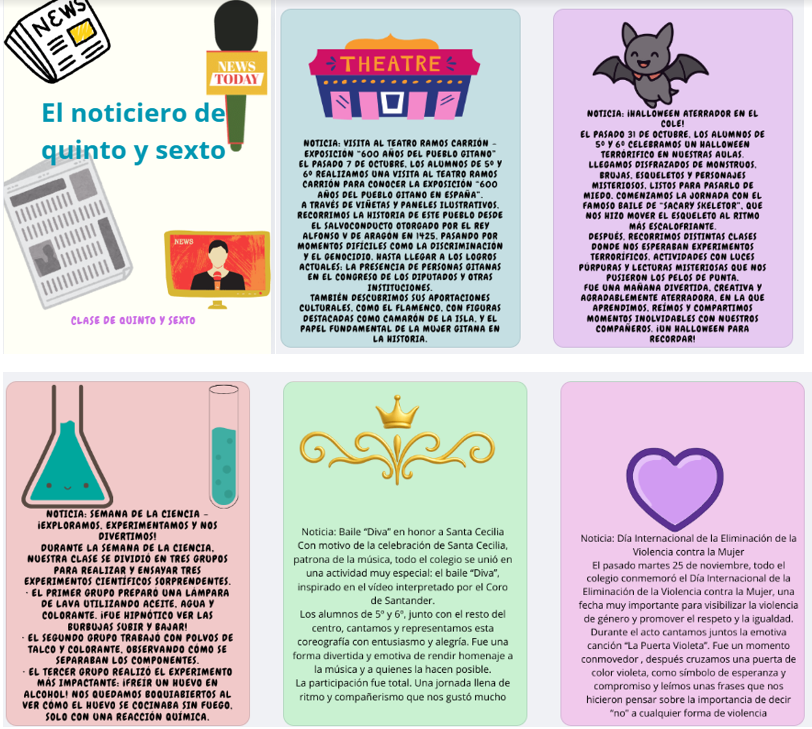 Más tarde unimos sus dibujos y sus voces en Canva. Decoramos, ajustamos elementos visuales y exploramos distintas aplicaciones de la web para dar movimiento a sus personajes. Ver cómo sus dibujos “cobraban vida” fue uno de los momentos más emocionantes. Todo el proceso reforzó su comprensión, su expresión oral, la interpretación de mensajes multimodales y un sentimiento de valía al escucharse a sí mismos… y, por supuesto, la competencia digital que estuvo presente en cada paso.